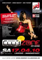Nach einem Jahr Pause geht die ENERGY CLUBZONE in die neunte Runde - mit jeder Menge Energy und leicht verändertem Konzept. Mitteldeutschlands größte Partymeile konzentriert sich am 17.04.10 auf die bekanntesten Party-Hotspots der Leipziger Clubszene in der Innenstadt. Als Headliner konnten u.a. MILK & SUGAR, DISCO DICE und die Residents der ENERGY CLUBZONE, die BOOGIE PIMPS gewonnen werden.