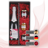 (IINews) - Das Muttertagspräsent besteht aus einer Flasche prickelnd-leichtem Sekt und drei Sorten ausgewählter Marmeladen-Kreationen. Die Marmeladen Apfel-Orange, Himbeere und Heidelbeere werden in einer kleinen Manufaktur aus erlesenen Früchten produziert. Alle Sorten werden in kleinen Mengen regelmäßig frisch hergestellt. Verpackt sind Sekt und Marmeladen ganz in Rot.