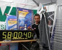 „Jetzt gehe ich erstmal ins Bett“, sagte der neue Weltrekordler unmittelbar nach seinem Triumph – ziemlich müde zwar, aber überglücklich. Ein spezielles Fitnesstraining, um das lange Stehen auszuhalten, hatte sich genauso ausgezahlt, wie die Maßnahme, mit beiden Händen zu bügeln. „Aber ohne die richtige Ausrüstung hätte es auch nicht geklappt“, sagte Daniel Peetz, der auf einem Airboard XL Plus von Leifheit die Bestmarke von 57 Stunden und 39 Minuten auf 58 Stunden und 40 Sekunden schraubte. Der sympathische Bundeswehroffizier war bis an seine Leistungsgrenze gegangen und wohl noch ein ganzes Stück weiter. Er musste ununterbrochen an seinem Bügelbrett stehen, denn Sitzen hätte zur Disqualifikation geführt. Pro Stunde wurden ihm nur fünf Minuten Pause zugesprochen, auf die er seine Mahlzeiten und Toilettenbesuche beschränken musste.