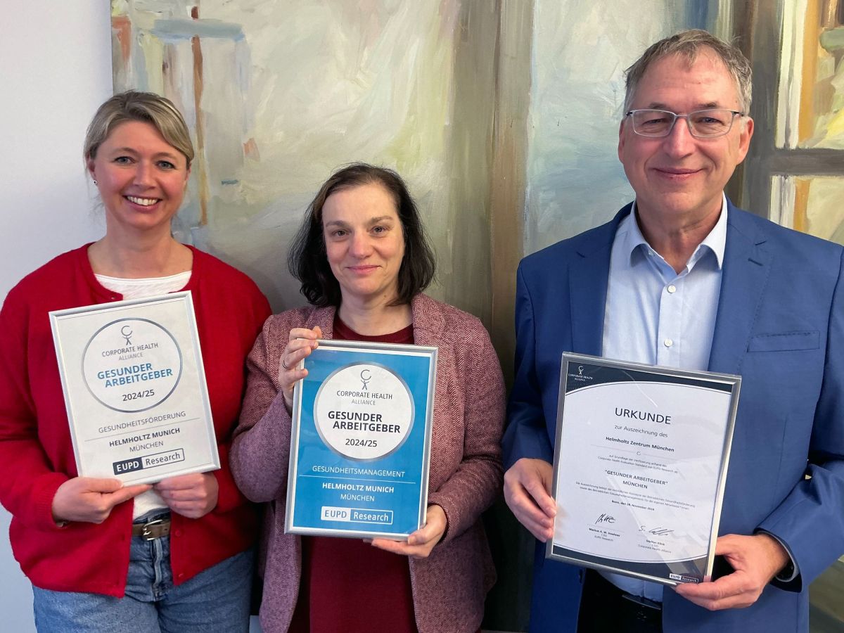 Mit dem regionalen Gütesiegel"Gesunder Arbeitgeber"würdigt EUPD Research Unternehmen, die sich ganzheitlich für das körperliche und mentale Wohlbefinden ihrer Mitarbeitenden einsetzen. Helmholtz Munich zählt zu den neuen Preisträgern und überzeugt durch Maßnahmen, die nicht nur die fachliche und persönliche Entwicklung fördern, sondern auch ein gesundes, motivierendes Arbeitsumfeld schaffen. Damit setzt das Forschungszentrum ein klares Zeichen für verantwortungsvolle Unternehmenskultur und nachhaltige Personalentwicklung.
