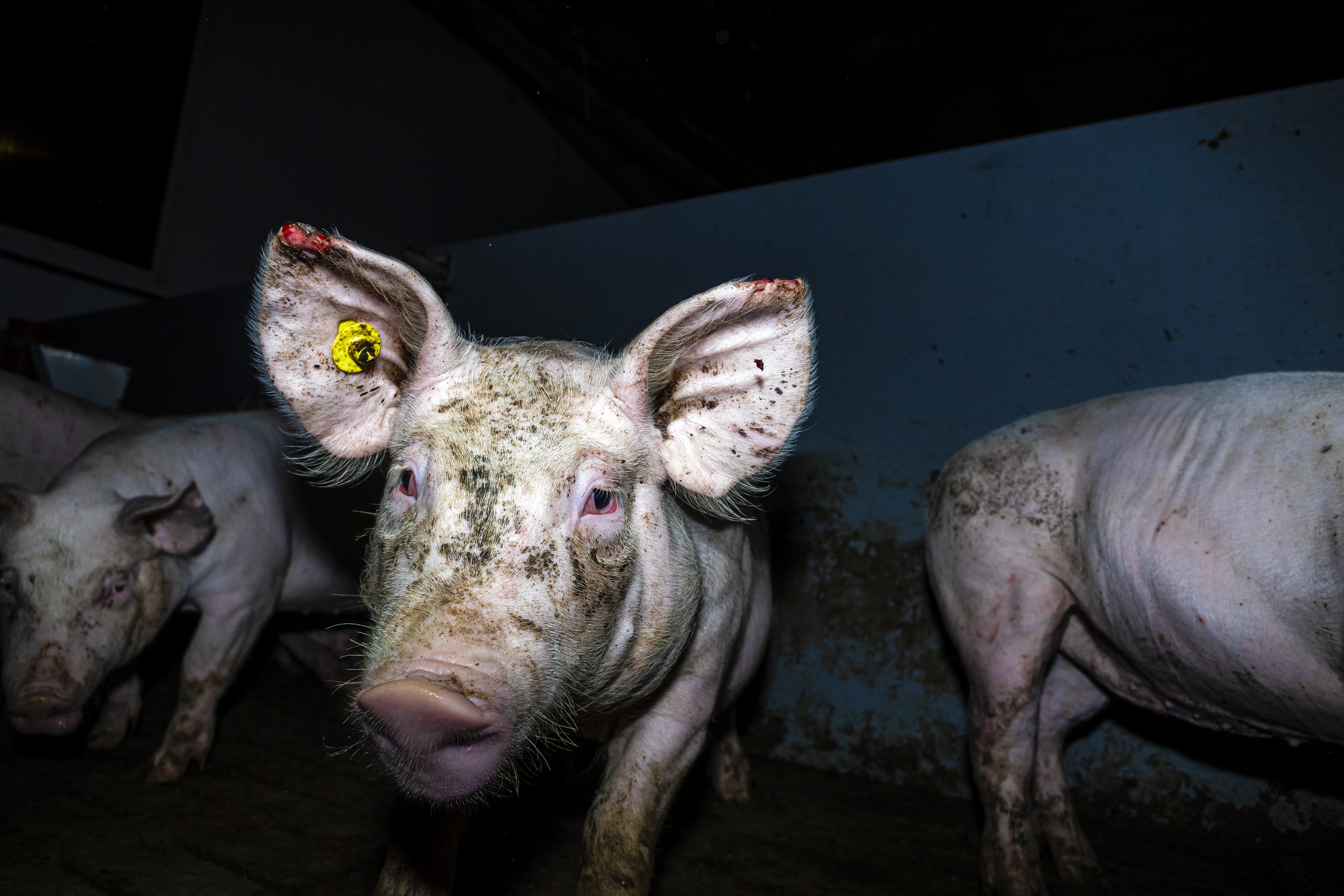 In den Stallungen werden rund 3.500 Mastschweine gehalten. Der Betrieb nimmt an der"Initiative Tierwohl"teil. Das bedeutet, dass der Landwirt etwas mehr Geld vom Schlachter bekommt und dafür die Tiere etwas besser halten muss. Das Fleisch der Tiere wird im Supermarkt unter der Haltungsstufe 2 verkauft."Diese ganzen Siegel sind Augenwischerei, hier wird den Menschen vorgegaukelt, Massentierhaltung sei Tierwohl", sagt Peifer.