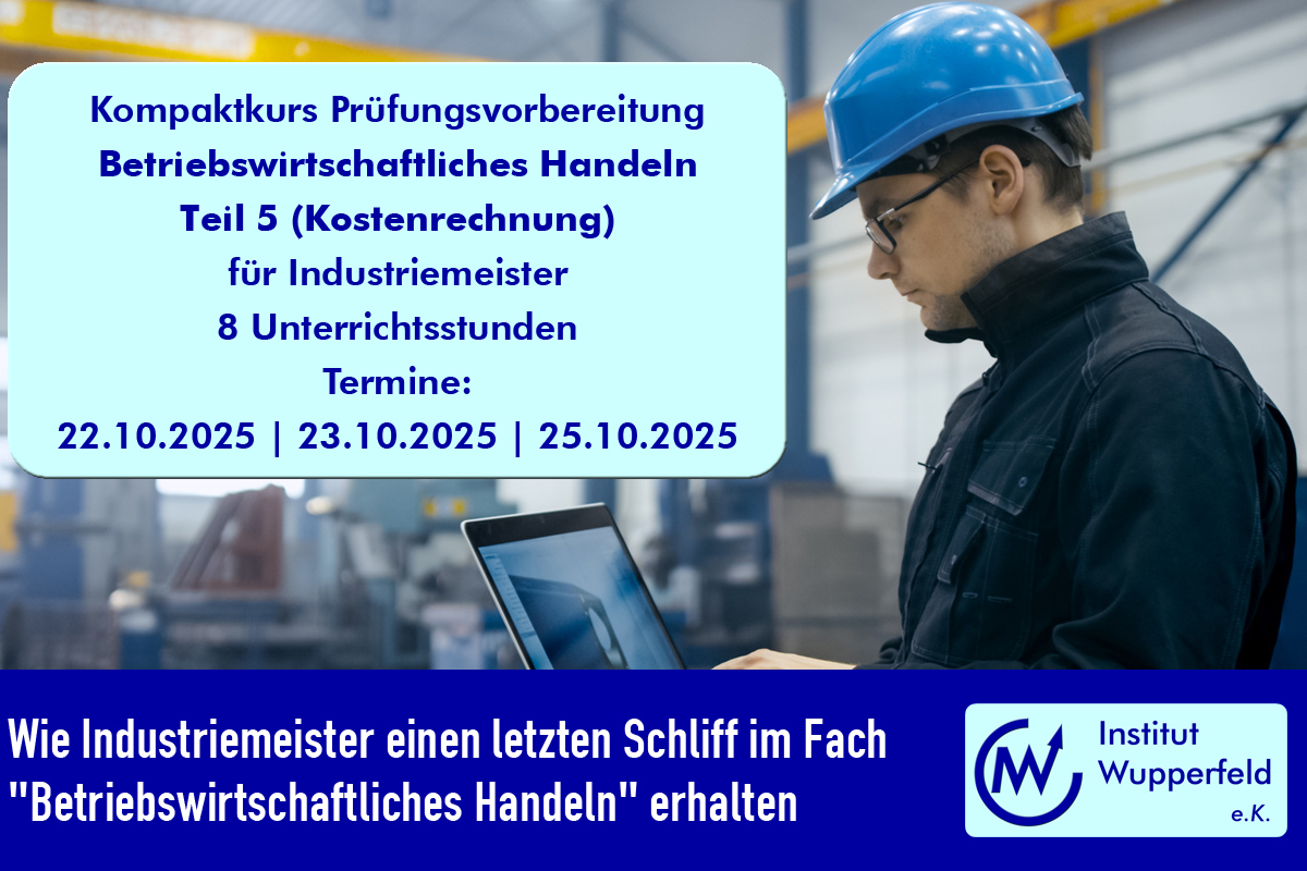 (IINews) - Das Fach Betriebswirtschaftliches Handeln gehört zu den zentralen Prüfungsgebieten angehender Industriemeister. Es ist anspruchsvoll, weil es einerseits grundlegende betriebswirtschaftliche Zusammenhänge vermittelt, andererseits auch das sichere Anwenden in praxisnahen Situationen fordert. Viele Teilnehmer der Meisterprüfung empfinden dieses Themenfeld als besonders herausfordernd – nicht selten entscheidet es über eine gute oder sehr gute Gesamtnote.