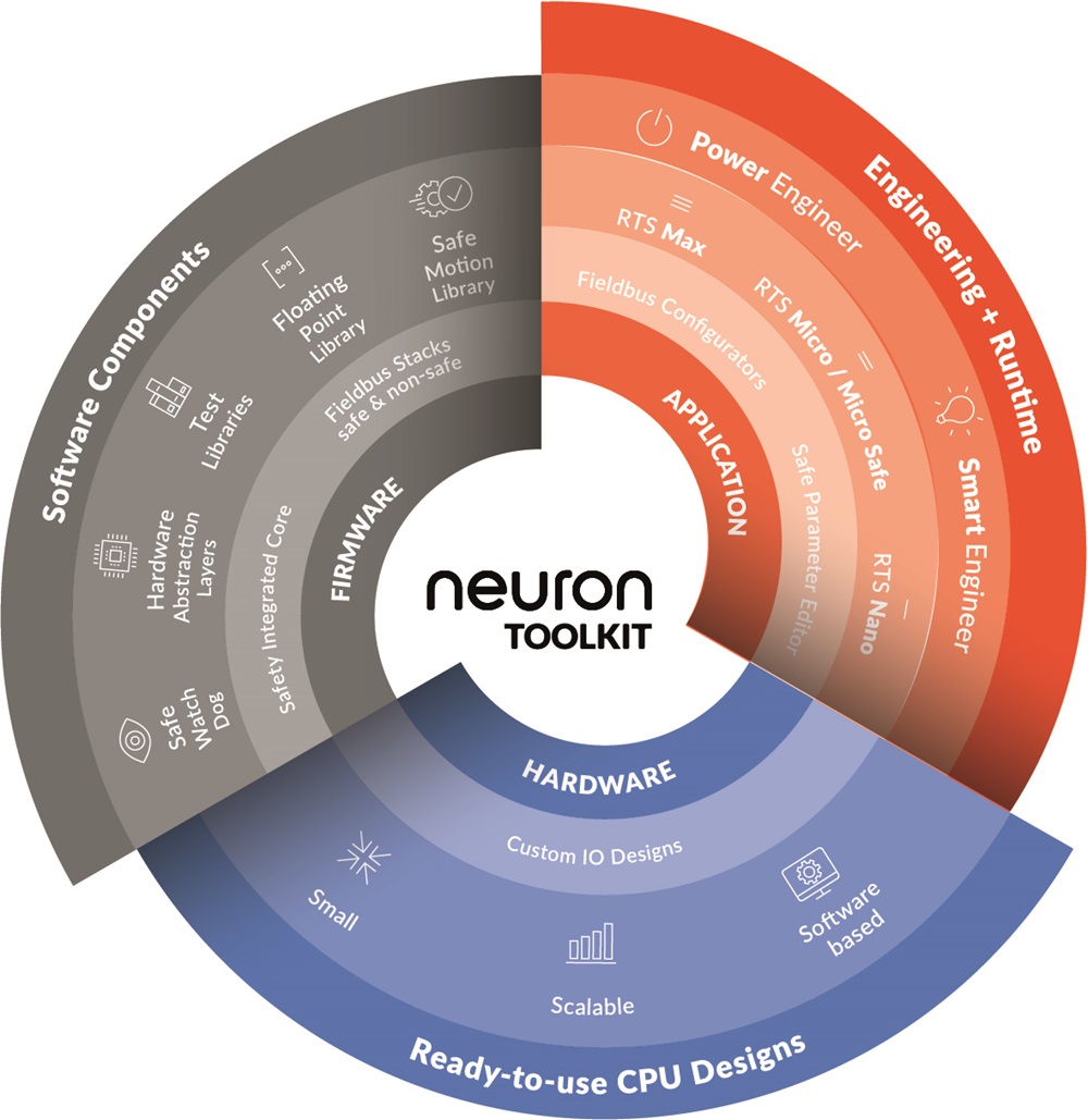 Neuron Automation ist Lösungspartner für funktionale Sicherheit, Engineering Tools und Runtimes. Mit seinem zertifizierten Safety-Baukasten und Entwicklungsdienstleistungen unterstützt das Unternehmen seine Kunden bei der Umsetzung funktional sicherer Steuerungskomponenten - von Hardwareüber Firmware bis zum Application Engineering. Die Safety-Lösungen sind hardware- und plattformunabhängig einsetzbar, so dass Unternehmen flexibel zwischen Embedded-Systemen, IPCs oder Referenzhardware wählen und zukunftsfähige Anwendungen realisieren können.