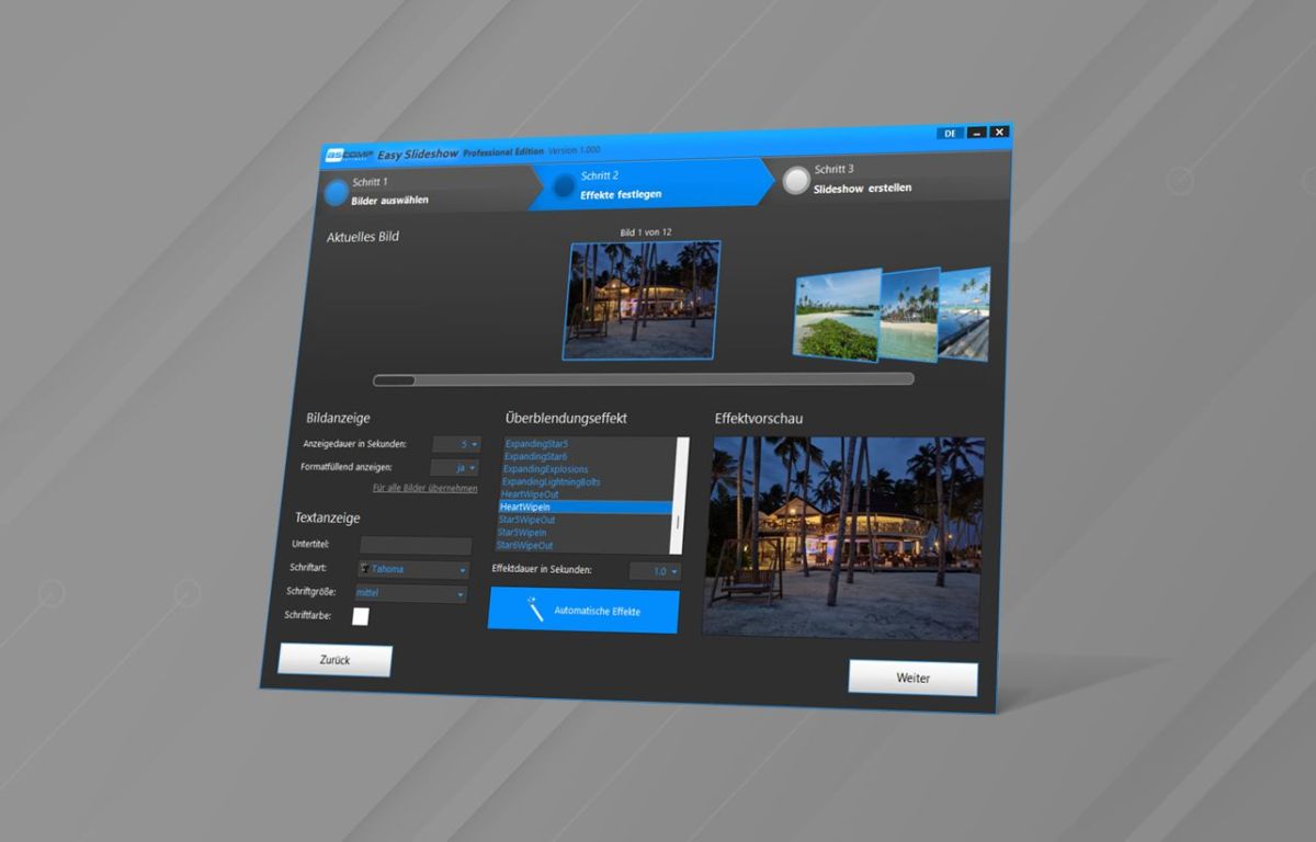 Effekte globalübernehmen: Übergänge und Effekte können nun bequem auf alle Bilder gleichzeitig angewendet werden - ideal für ein einheitliches Erscheinungsbild.