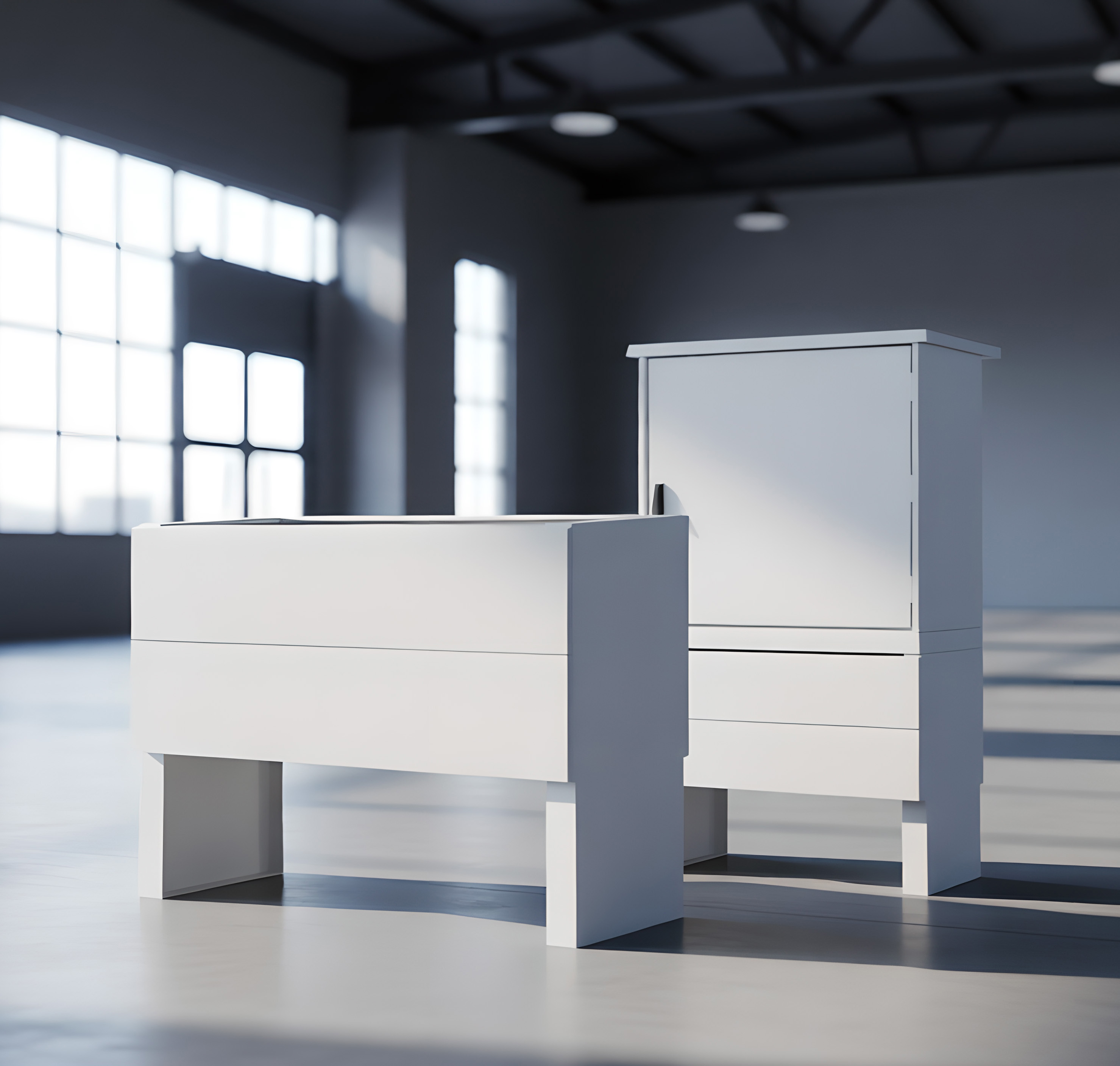 Für Projekte mit Kostenfokus bietet Edelstahl ein hervorragendes Preis-Leistungs-Verhältnis. Sockel aus V2A- oder V4A-Stahl sind korrosionsbeständig, formstabil und besonders langlebig. Durch moderne Fertigungsverfahren wie Laserschneiden und CNC-Biegen stellt Schramm höchste Maßhaltigkeit sicher. Auf Wunschwerden die Sockel farblich pulverbeschichtet, sodass sie sich harmonisch in das Umfeld oder zum Gehäuse des Outdoorschranks anpassen. Edelstahl lässt sich vollständig recyceln und trägt damit zu einer positiven Ökobilanz bei - ein Argument, das bei vielen Ausschreibungen heute entscheidend ist.