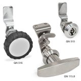 Der DrehspannriegelGN 516wiederum eignet sichüberall dort, wo es um dichte, vibrationssichere Verriegelungen geht. Bei GN 516 wird die Drehbewegung nach 90 Grad nicht beendet, sondern anschließend in einen linearen Hub des Riegels umgesetzt und so ein hoher Anpressweg – beispielsweise in Kombination mit einer elastischen Dichtung – realisiert.