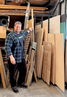 Das Plattenregal hat Siggi Hoffmann mit Freunden selbst aufgebaut, die Modulbauweise ermöglicht eine schnelle und leichte Montage. Heute lagert er Massivhölzer im Kragarmregal, während Platten aus den unterschiedlichsten Materialien und in verschiedenen Formaten effizient im Plattenregal Platz finden. „Wir haben diese Werkstatt in den letzten Jahren auf einen Level gehoben – das ist unfassbar“, so Hoffmann.