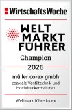 (PresseBox) - Die müller co-ax gmbh wurde auch für das Jahr 2026 vom renommierten Wirtschaftsmagazin WirtschaftsWoche als Weltmarktführer ausgezeichnet. Das Unternehmen behauptet damit seine Spitzenposition in den Kategorien coaxiale Ventiltechnik und Hochdruckventile und unterstreicht erneut seine technologische Führungsrolle im globalen Markt.
