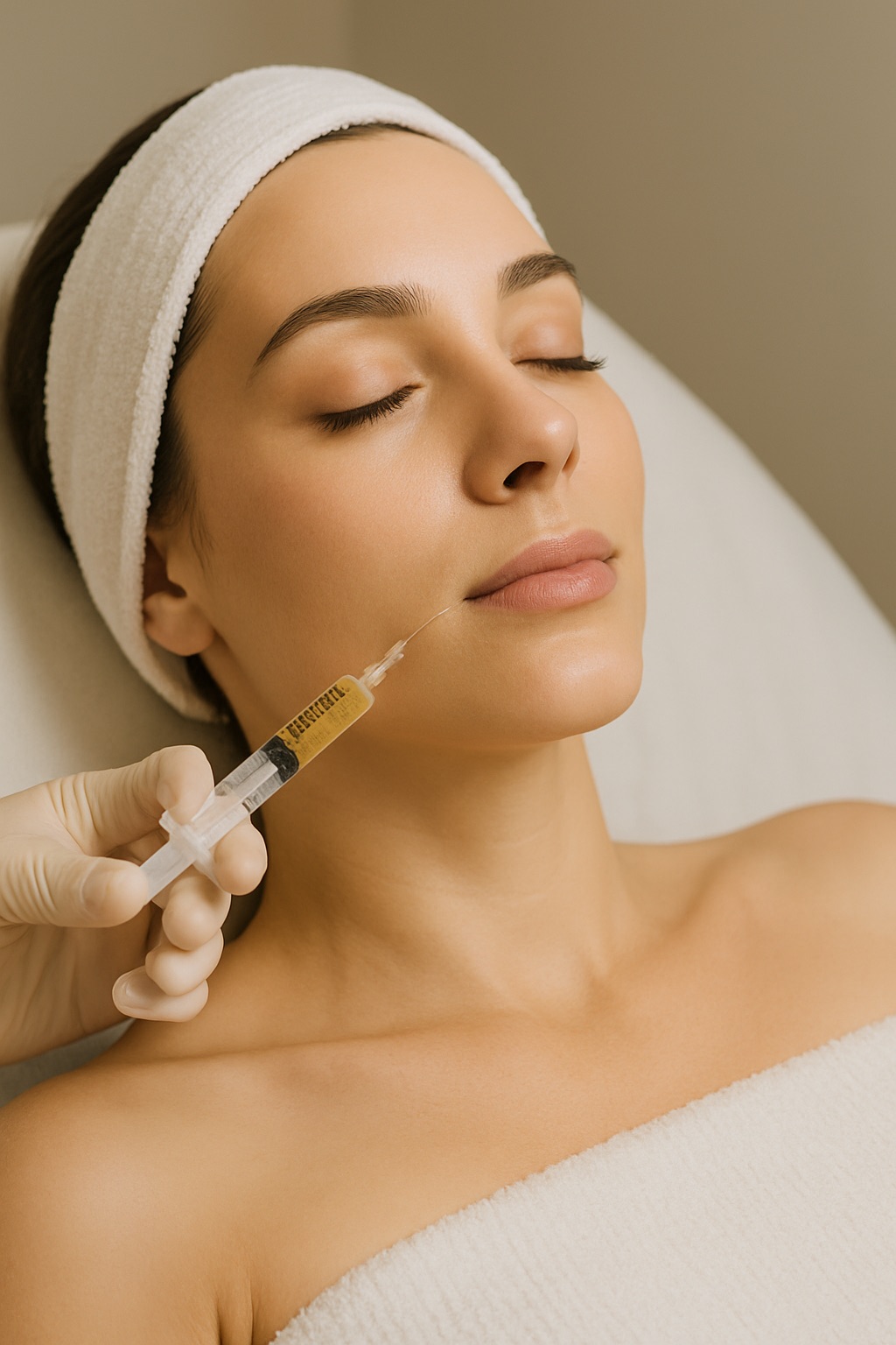 Die Injektion des exosomenreichen Plasmas in die Haut oder Kopfhaut.