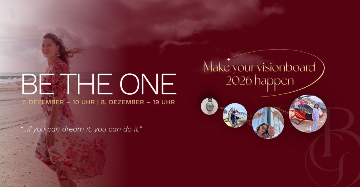In ihrer zweitägigen Masterclass"BE THE ONE&Make Your Vision Board 2026 Happen", zeigt Vortragsrednerin Beate Glöser, wie jedes Ziel auf dem Vision Board mit Klarheit, Leichtigkeit und Fokus umgesetzt werden kann und so zum echten Erfolg führt. Unter dem Motto"Dream it - Plan it - Do it"legt sie den Grundstein für ein Business und ein Leben, das den eigenen höchsten Visionen gerecht wird. Für 22€ kann man 2 Tage tief eintauchen und mehr Klarheit erlangen.