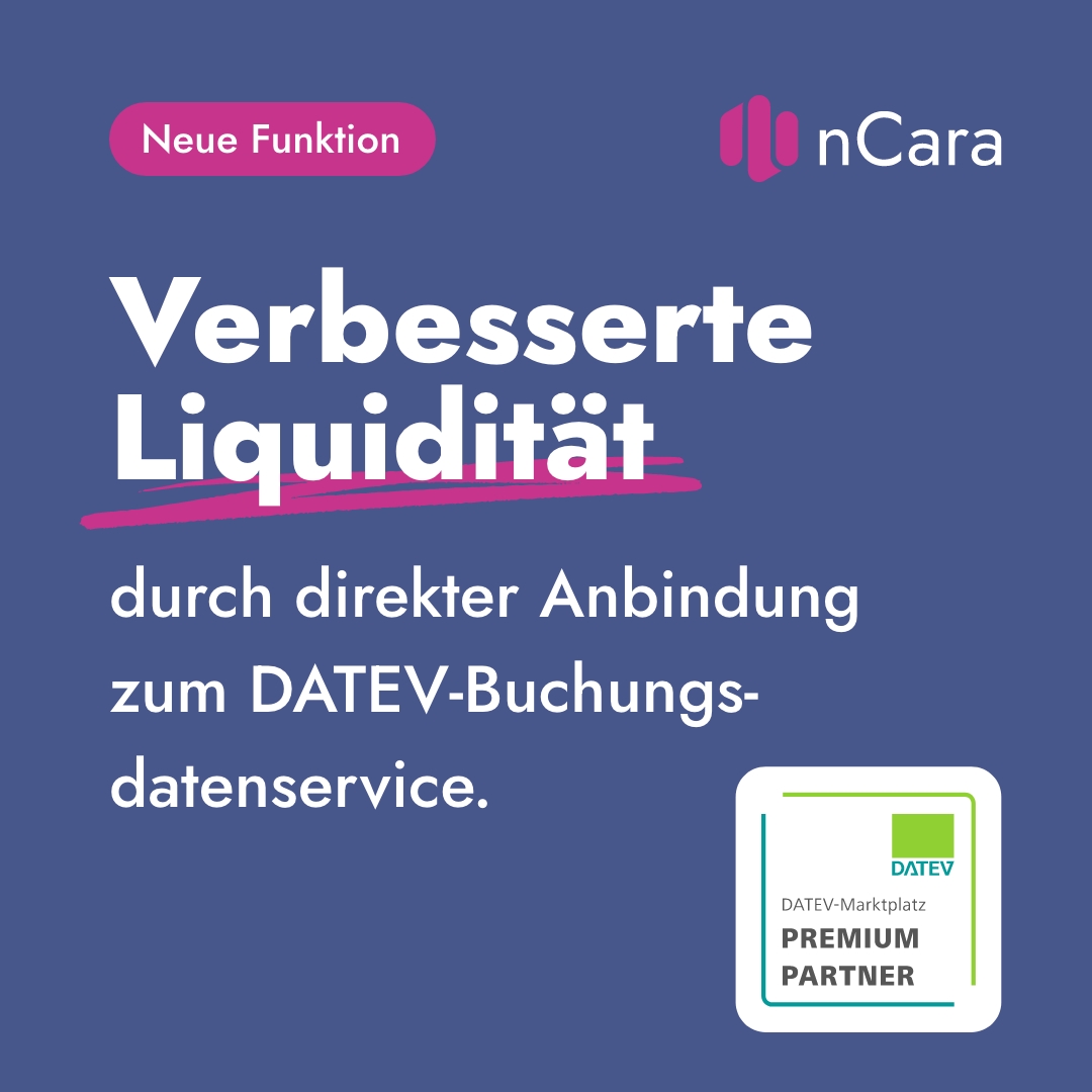Berlin, November 2025–Mit papierlosen, schnellen und sicheren Prozessen zu besserer Liquidität. nCara wird DATEV-Marktplatz Premium Partner im Bereich Pflegesoftware–die neueste Generation der nCara-Lösung jetzt auf dem DATEV-Marktplatz verfügbar.