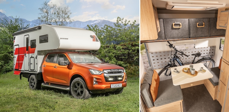 Dieses neue, von TISCHER auf Basis der langen Erfahrung für Individualaufbauten entwickelte Kabinenmodell gibt es am Messestand exemplarisch auf einem ISUZU D-MAX Doppelkabiner zu sehen. Ein typisches Merkmal von Flachpritschen-Pick-ups ist ihre durchgehend ebene, großzügige Ladefläche, die nicht durch hochstehende Radhäuser beschränkt wird. Damit haben die TISCHER Konstrukteure mehr Spielraum und Optionen beim Planen des Grundrisses und der Inneneinrichtung. Aufteilung und Möblierung können flexibler vorgenommen werden, wobei das Auf- und Absetzen genauso schnell und mühelos funktioniert wie bei allen anderen TISCHER Modellen. Passend für sportliche und individuelle Outdoor-Fans lassen sich in die neue Flatbed-Kabine mehr Wohnideen nach persönlichen Wünschen hineinpacken. Dabei kann TISCHER durch Manufakturfertigung selbst ungewöhnliche Pläne realisieren: z. B. mehr Schlafplätze im Kabineninneren,ein platzsparendes Stockbett für Kinder, eine U-Sitzgruppe zum Essen und geräumigere Küchenmöbel bis hinunter zum Boden. Auf Wunsch ist deutlich mehr Stauraum ebenso möglich wie größere Fenster und eine multifunktionale Sitzgruppe im Heck der Kabine. Sie kann durch einfaches, schnelles Hochklappen zur geschützten"Innengarage"für Fahrrad, E-Bike, Kite, Kajak, Golf-Bag, Kinderwagen oder Buggy verwandelt werden.