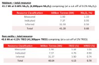 - 1,3 m (at) 12,24 % TREO und 0,96 % Nb?O? ab 11,15 m