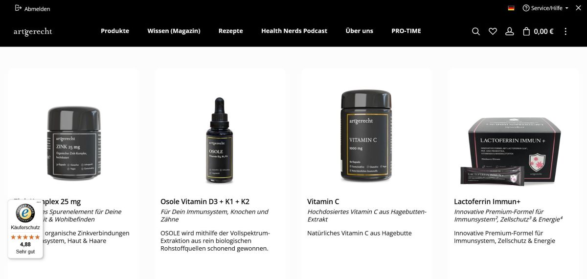 Die artgerecht gmbh mit Sitz in Frankfurt am Main hat es sich zur Mission gemacht, qualitativ hochwertige Nahrungsergänzungsmittel für den Menschen anzubieten