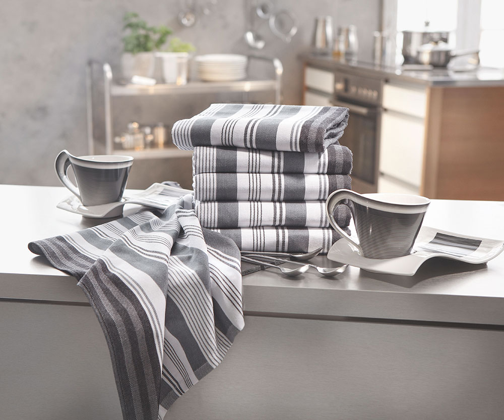 Die Kollektion umfasstGeschirrtücheraus reiner Baumwolle und Halbleinen. Baumwolleüberzeugt durch weiche Oberfläche, hohe Saugfähigkeit und Strapazierfähigkeit. Sie nimmt Flüssigkeiten zuverlässig auf, schützt Oberflächen und behält Form sowie Haptik auch nach häufigem Waschen. Geschirrtücher aus Baumwolle erfüllt die hohen Anforderungen professioneller Hotels und eignet sich ideal für das Abtrocknen von Geschirr, Besteck und Gläsern.