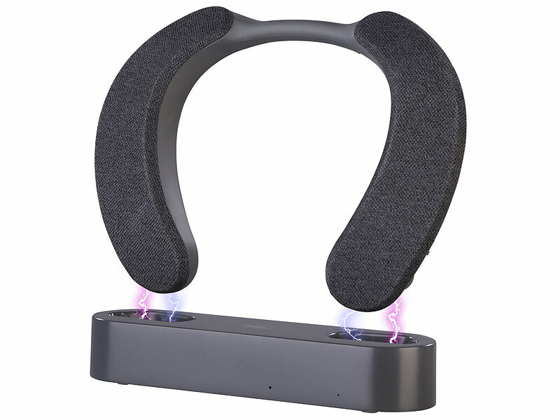 - Praktische Dockingstation: lädt und verwahrt den Nackenlautsprecher