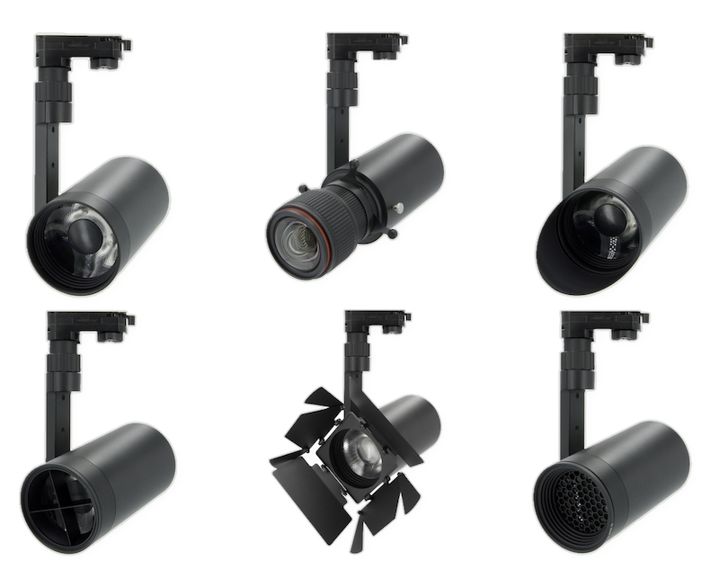 Zur Entblendung und Streulichtkontrolle stehen u. a. Wabengitter (Honeycomb Grid), ein Blendklappenaufsatz (8-fach verstellbar) sowie Half-Snoot und Full-Snoot zur Verfügung - für präzise Lichtführung, hohen Sehkomfort und minimierte Reflexionen auf Glas oder glänzenden Oberflächen.