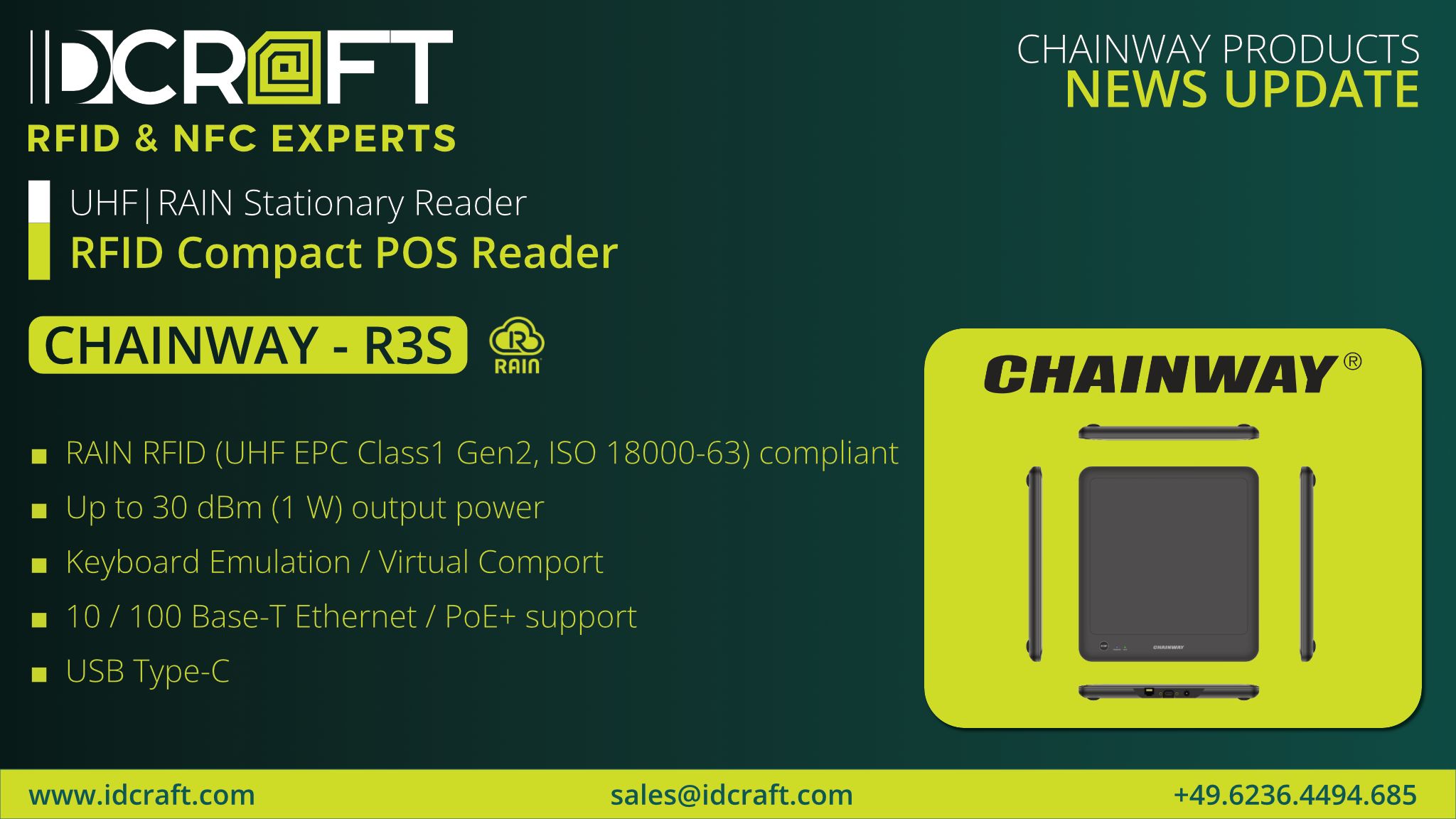 (IINews) - >>Chainway R3S– Präzise UHF RFID Nahfeld-Erfassung für kontrollierte Auto-ID-Prozesse>Klare Positionierung im IDCRAFT RFID-Portfolio>Leistungsstarke UHF | RAIN-RFID Technologie>Flexible Schnittstellen für einfache Integration>Typische Einsatzbereiche des Chainway R3S>Mehrwert durch IDCRAFT
