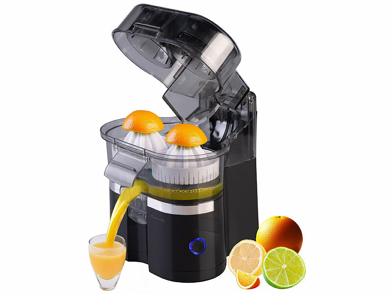 Motor mit 15.000 Umdrehungen pro Minute: Der Motor erreicht 15.000 Umdrehungen pro Minute und verarbeitet Orangen, Mandarinen sowie andere Zitrusfrüchte.