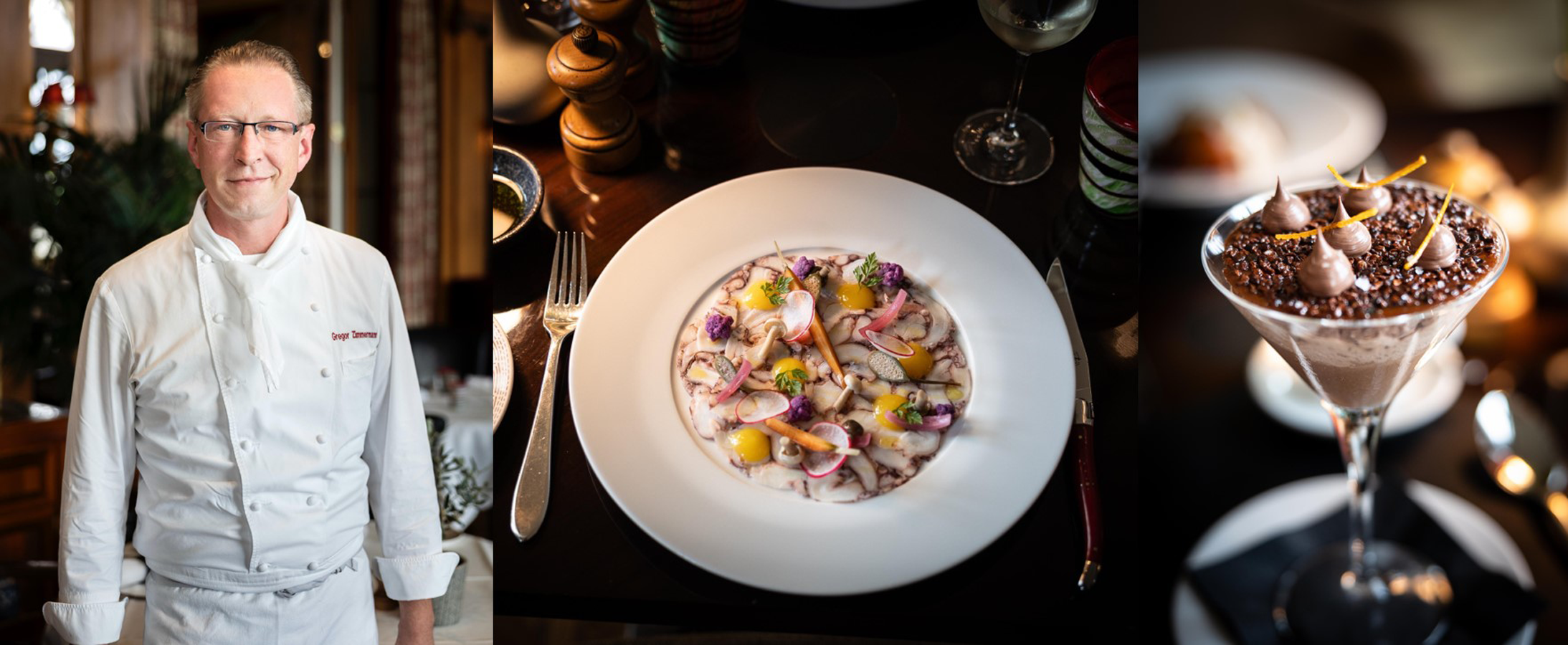 Gregor Zimmermann gilt als Meister darin, alpine Schweizer Traditionen mit globalen Einflüssen zu verweben. Jedes seiner Gerichte trägt eine Handschrift, die durch Klarheit, Raffinesse und Reduktion geprägt ist. Seine Gerichte erzählen Geschichten von Herkunft, Landschaft und Kultur - und machen aus jedem Menü ein Erlebnis, das weit über den Teller hinausgeht.