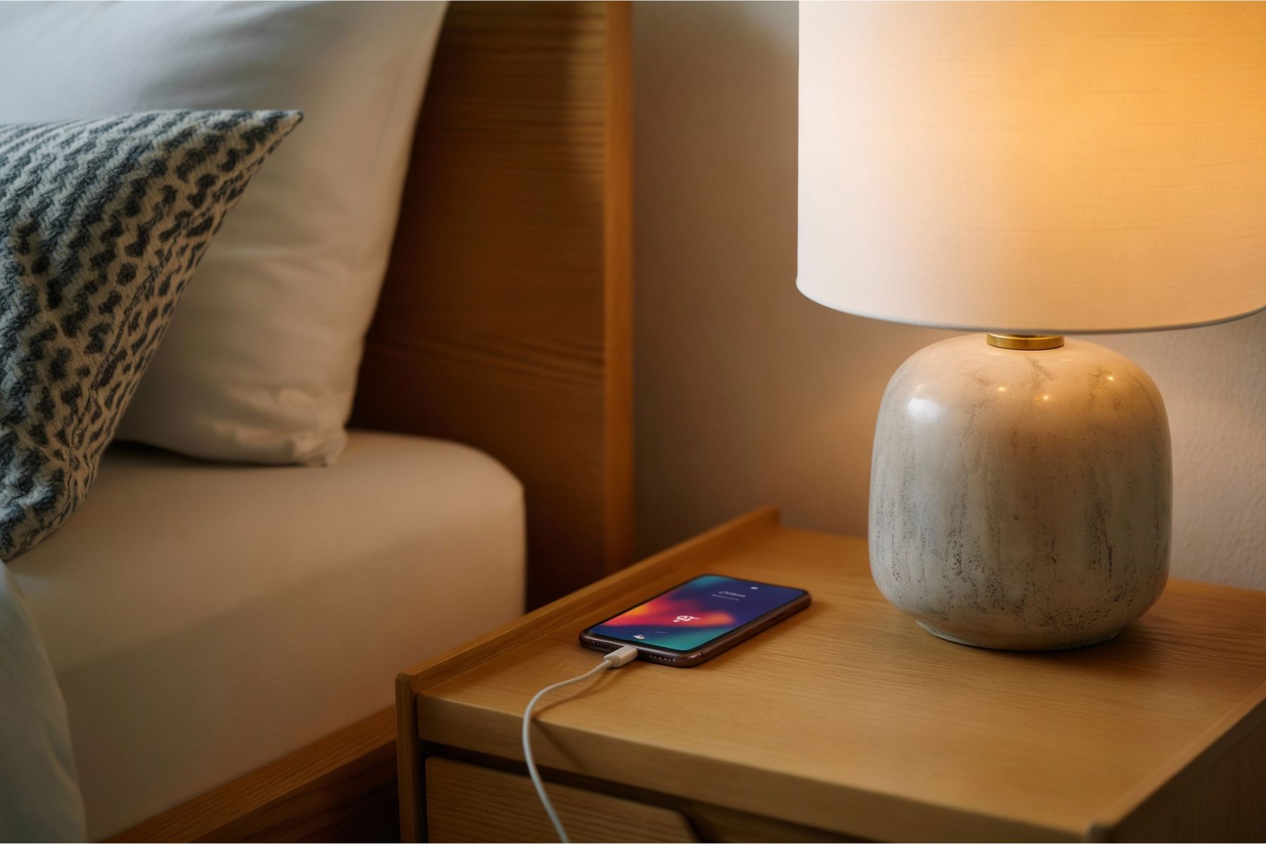 Die einfachste und wirksamste Maßnahme ist Abstand. Elektromagnetische Felder nehmen mit der Entfernung zur Quelle stark ab. Ein Smartphone, das statt direkt neben dem Kopf in drei Metern Entfernung liegt, belastet um ein Vielfaches weniger. Gleiches gilt für Radiowecker, Nachttischlampen und andere Geräte.