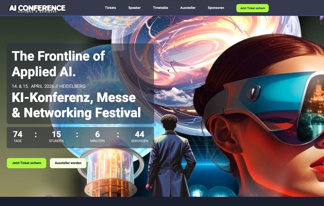 Mitüber 1.000 erwarteten Teilnehmenden, mehr als 100 Speaker:innen und einer vollständig ausgebuchten Ausstellung versteht sich die AI Conference Science x Business als Plattform für alle, die Künstliche Intelligenz strategisch, verantwortungsvoll und wirtschaftlich wirksam einsetzen wollen. Heidelberg wird damit im April erneut zum Treffpunktfür die Akteur:innen, die die Zukunft der KI aktiv gestalten.Zum Programm und Line-Up