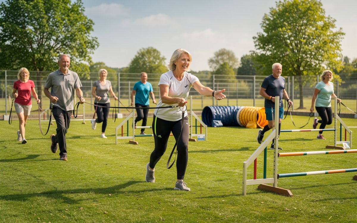 ? Bewegung fördern: Durch Spaziergänge und Agility-Kurse fördert das Hobby Dogging körperliche Aktivität, zum Beispiel bei alten Menschen.