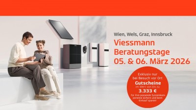 (IINews) - Erfahren Sie aus erster Hand, wie Sie Ihr Haus effizient heizen, wie eine Sanierung mit einer Wärmepumpe abläuft und wie Sie Ihre bestehende Förderzusage schnell und optimal nutzen können. Informieren Sie sich unter https://www.viessmann.at/ (https://www.viessmann.at/) über uns, die Herausforderungen der Energiewende und unsere effizienten Klima- und Energielösungen wie z.B.Wärmepumpen (https://www.viessmann.at/de/wissen/technologie-und-systeme/waermepumpe.html) und Pelletheizungen (https://www.viessmann.at/de/wissen/technologie-und-systeme/pelletkessel.html). Unser oberstes Ziel ist es, wertvolle Ressourcen nachhaltig zu schonen und gleichzeitig unser gesamtes technisches Knowhow optimal einzusetzen, um für Sie den größtmöglichen Komfort zu erzielen. Wir freuen uns auf Ihre Fragen bei unseren Beratungstagen am 05. und 06. März 2026.