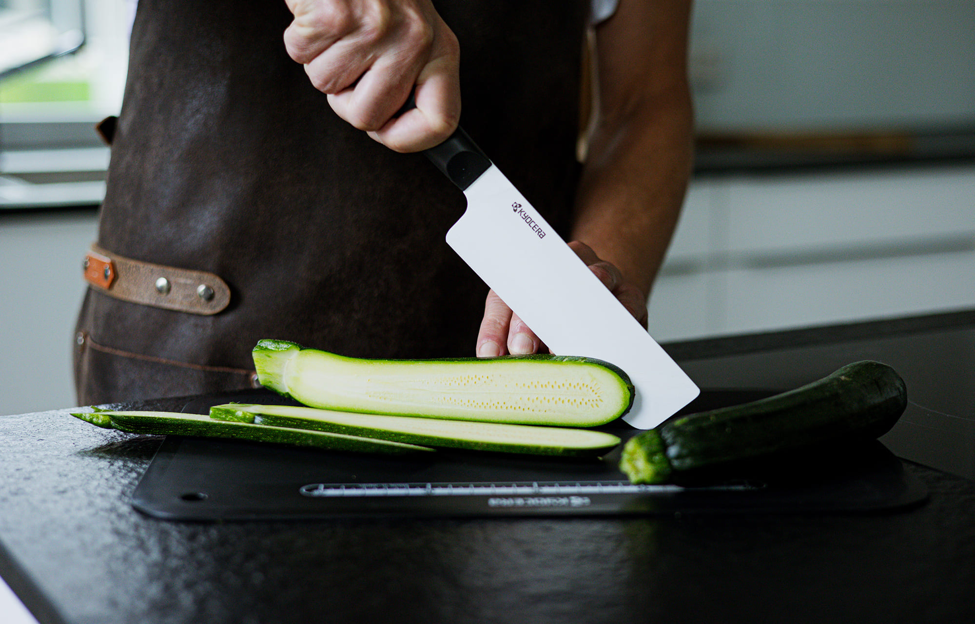 In der Chowa Serie von Kyocera, deren Name für das Streben nach Harmonie steht, trifft diese japanische Tradition auf modernes Hightech-Material. Die handgeschliffene, ultrascharfe Keramikklinge aus hochwertiger Zirkoniakeramik ist leicht, robust und korrosionsfrei - ideal für präzises Arbeiten in der Gemüseküche.