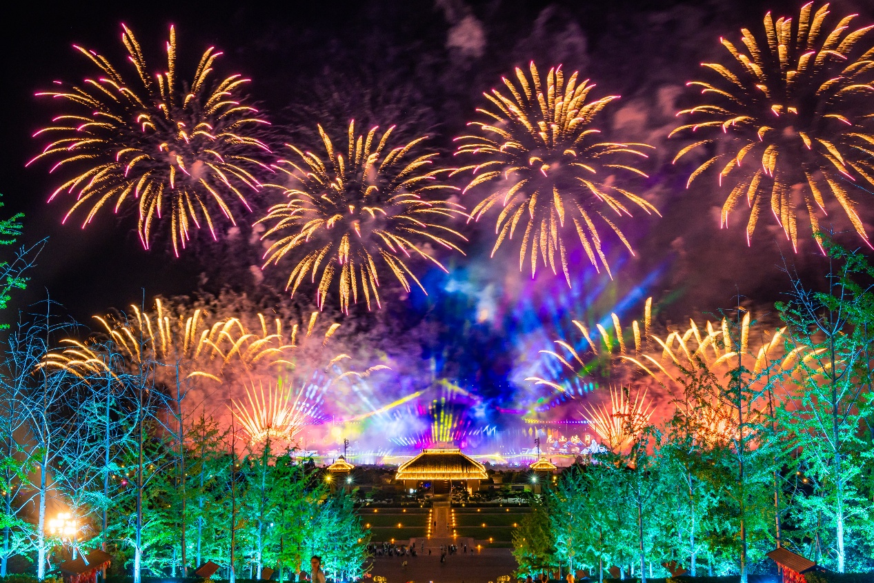 At Nishan Sacred Land, technology and art light up the Spring Festival night sky. Thousands of drones paint the dark sky with 3D auspicious patterns, including the Eight Steeds painting and a giant Chinese character"Fu", staging a stunning starry New Year show. Brilliant fireworks dance with the stars, creating an immersive audio-visual feast. Visitors can join the"Sky Screen Wishes"activity, projecting personal New Year wishes onto the sky screen in real time, letting aspirations bloom over this sacred land.