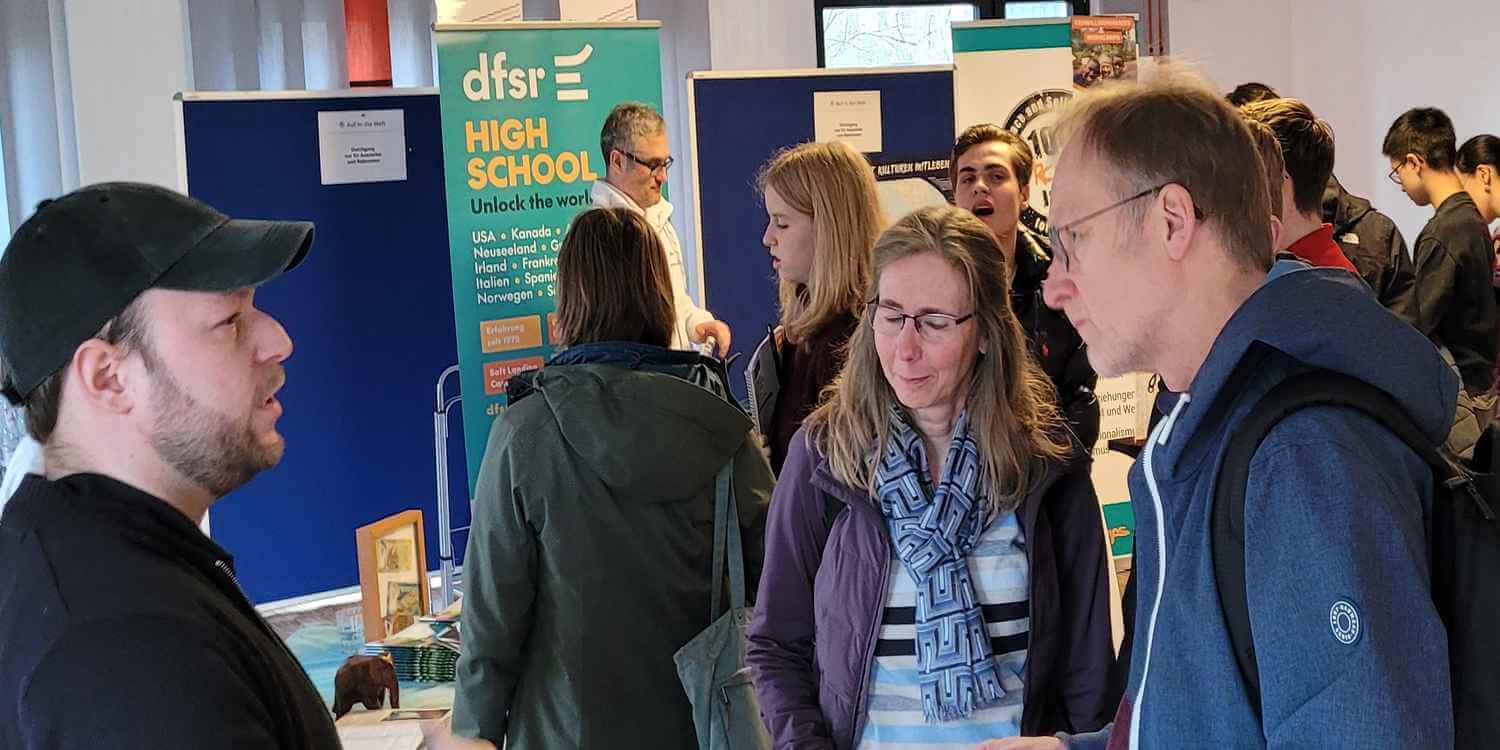Von Beginn an und den ganzen Tag ließen sich die Besucherinnen und Besucher über die Angebote und alles Wichtige zu Auslandsaufenthalten informieren. Das Interesse reichte vom Schüleraustausch über Sprachreisen, Freiwilligendienste bis zu Work and Travel und zur Finanzierung von Auslandsaufenthalten. Die Deutsche StiftungVölkerverständigung informierte über Finanzierungsquellen und die AUF IN DIE WELT-Stipendien.