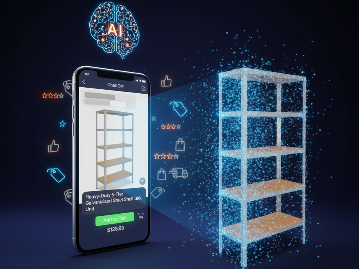 Millionen Nutzer kaufen baldüber ChatGPT statt Google. shelfplaza optimiert als einer der ersten Händler der Regalbranche Produktdaten und Content gezielt für KI-Empfehlungen und AI-Shopping.