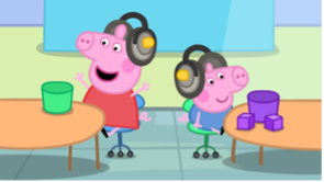 Die Handlung beginnt in der Folge„Hörtest“, in der Peppas Familie bei einem Routinebesuch beim Arzt erfährt, dass Schorsch auf einem Ohr einen mittleren Hörverlust hat. Schorsch bekommt ein Hörgerät, damit er die Welt der Geräusche auf neue Weise erleben kann. Unterstützt wird Schorsch in dieser Folgevon einer Audiologin, die im englischen Original von Jodie Ounsley synchronisiert wird – einer bekannten TV-Persönlichkeit, Autorin und der ersten gehörlosen Rugby-Nationalspielerin Englands.