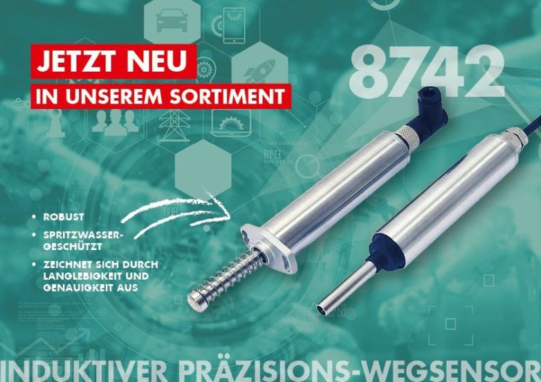 MTS Messtechnik Schaffhausen GmbH: burster•NEU - Induktiver Präzisions-Wegsensor TYP 8742 Robust, spritzwassergeschützt, klein bauend