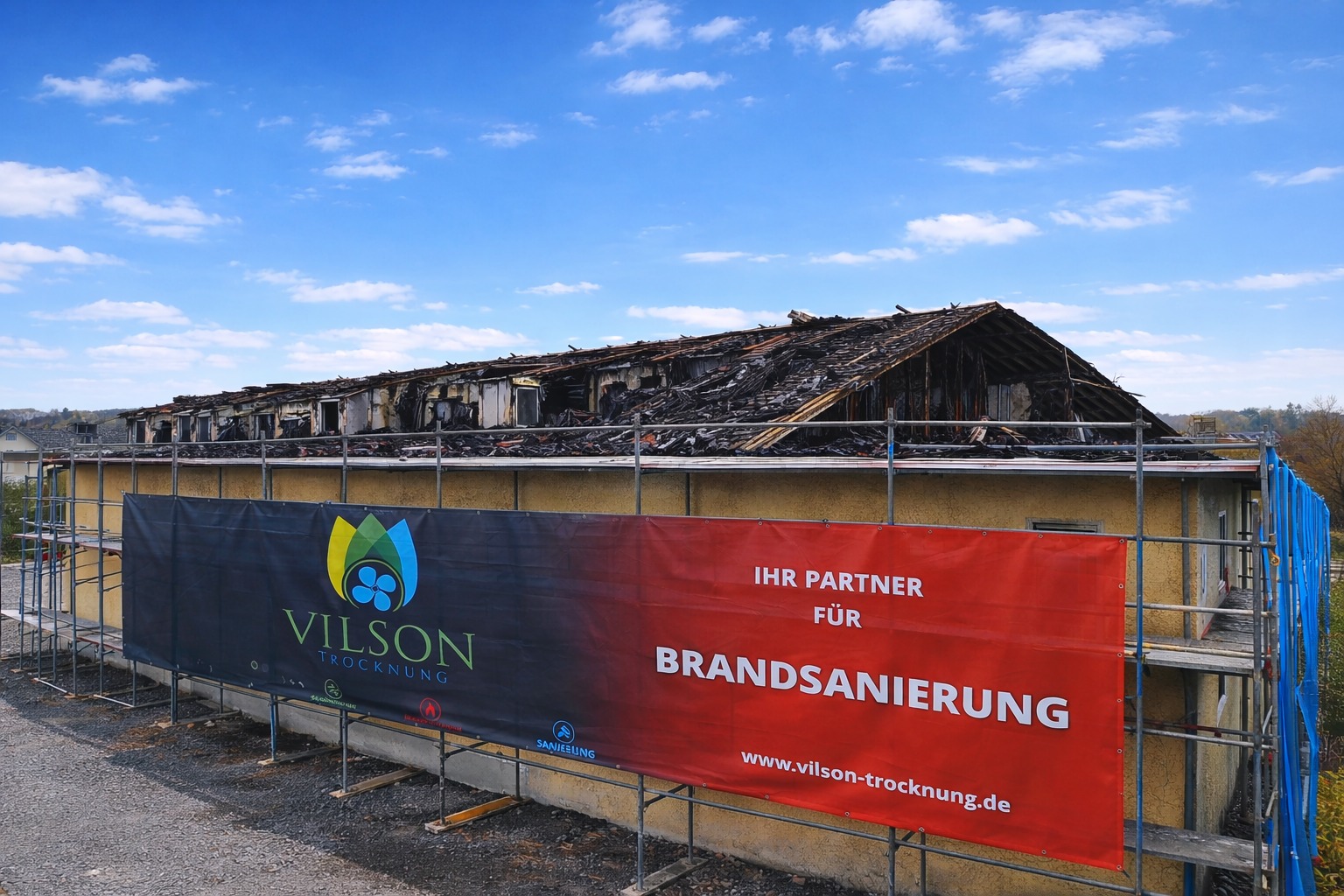 "Vilson Trocknungübernimmt die Brandschadensanierung von 1.000 m²nach dem Großbrand in Schweitenkirchen."