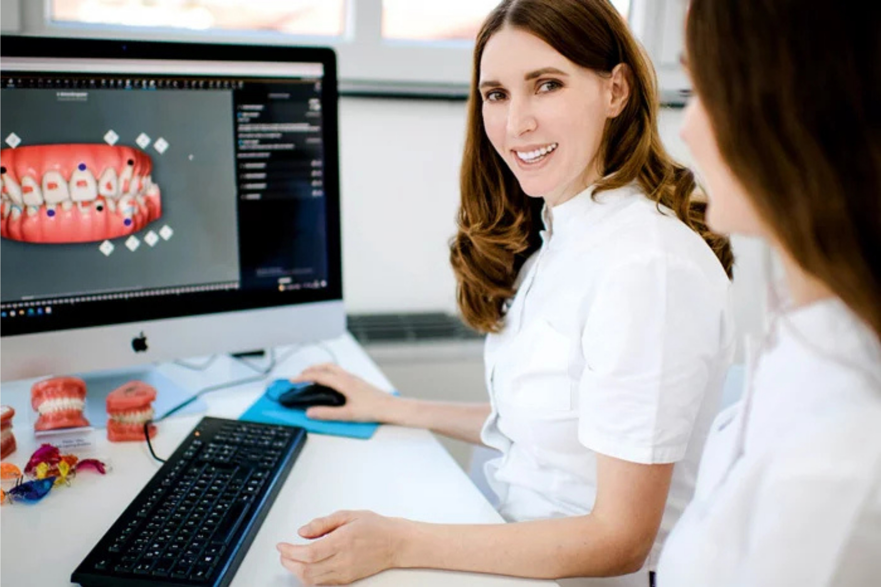 Der Einsatz modernster digitaler Technologien ist in der Praxis von Dr. Dana Klimas kein Marketingversprechen, sondern gelebte Behandlungsrealität. Sämtliche diagnostischen Verfahren - von der intraoralen Vermessung bis hin zur strahlungsarmen Röntgendiagnostik mit spezieller Bildverarbeitungssoftware - sind vollständig digitalisiert. Diese technologische Infrastruktur ermöglicht es dem Behandlungsteam, Zahnbewegungen mit einer Präzision zu planen und umzusetzen, die mit herkömmlichen, analogen Methoden nicht erreichbar wäre.
