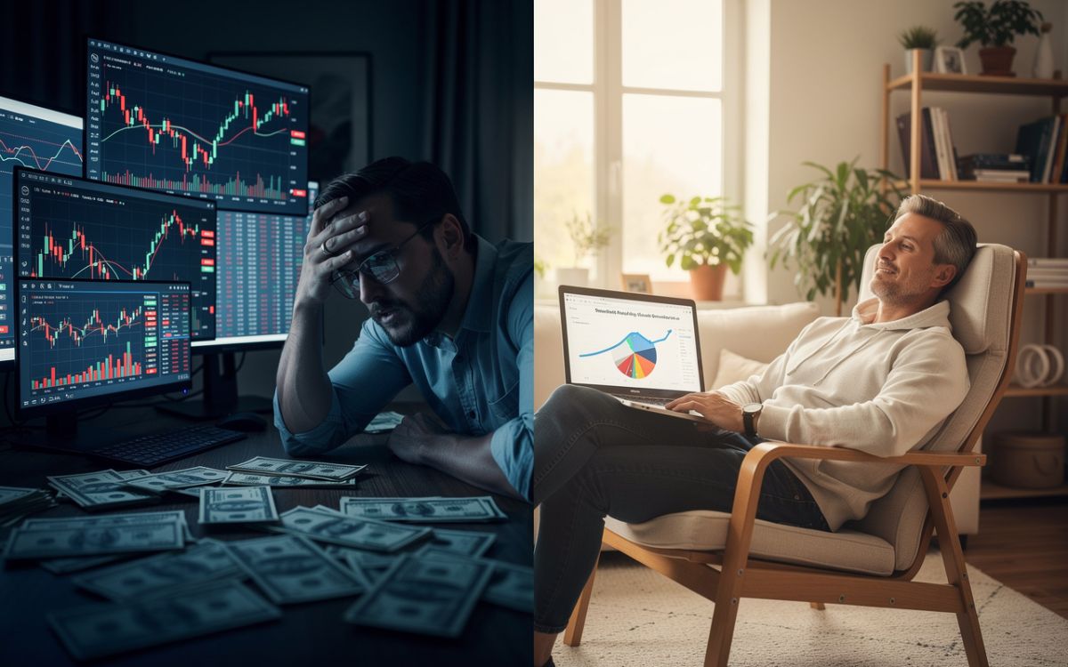 Was passiert, wenn ein Anleger den Shift vollzieht - weg von einem konzentrierten Einzelaktien-Experiment, hin zu einem breit diversifizierten ETF? Der Effekt summiert sichüber drei Ebenen: erstens die Kostensenkung (von versteckten Handelskosten und Steuern auf 0,03-0,10 Prozent ETF-Gebühr), zweitens die Eliminierung des Behavior Gaps durch passives Halten, und drittens die Diversifikation, die das Risiko katastrophaler Einzelverluste auf ein Minimum reduziert.In einem breit gestreuten ETF auf den MSCI World oder FTSE All-World ist automatisch jede zukünftige Amazon oder Nvidia enthalten - ohne die Notwendigkeit, sie vorher identifizieren zu müssen.