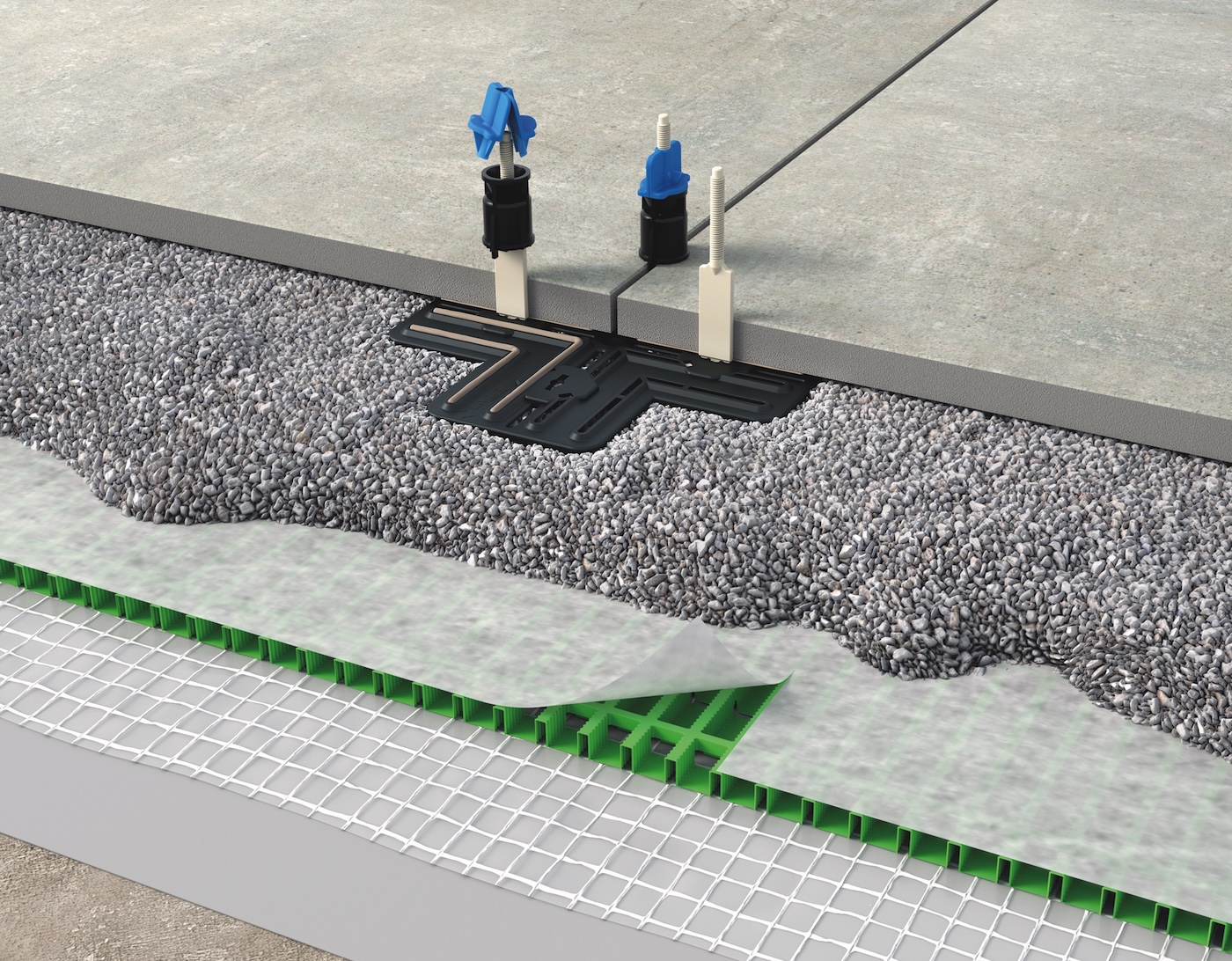 Gutjahr: AquaDrain FS stabilisiert lose Verlegung, Montagekleber DiProtec FIX-MSP optimiert