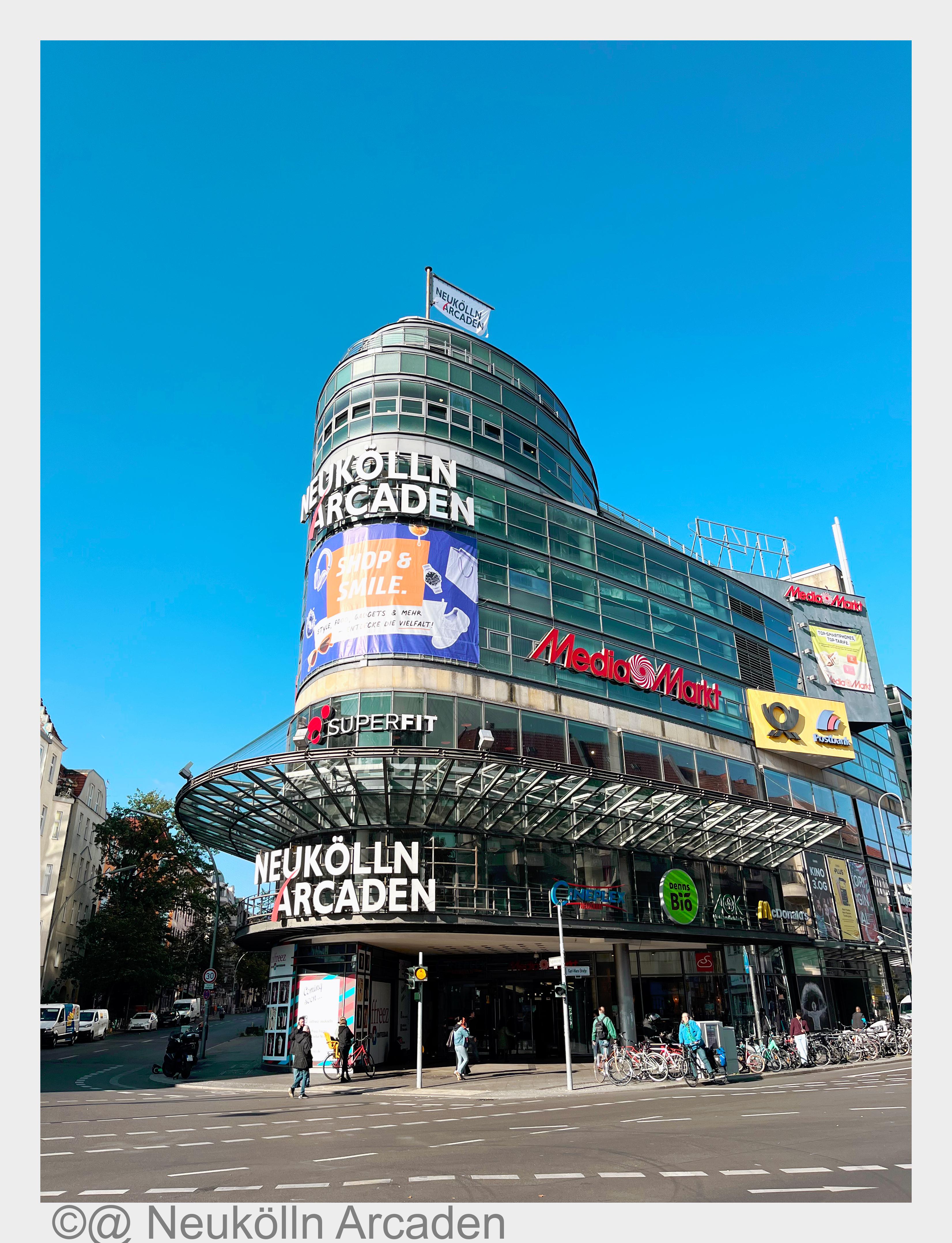 Zunächst als Forum Neukölln etabliert und 2003 als Neukölln Arcaden wiedereröffnet, ist das Shoppingcenter an der Karl-Marx-Straße heute der zentrale Nahversorger in Neukölln. Ob Mode, Kosmetik, Elektronik oder Lebensmittel - in den rund 50 Shops der Neukölln Arcaden finden Anwohner und Besucher alles, was sie im Alltag brauchen. Darüber hinaus bieten die Arcaden mit dem beliebten Kunst- und Kulturdachgarten Klunkerkranich, der Stadtbibliothek Neukölln und dem Cineplex-Kino, Berlins drittgrößtem Lichtspielhaus, vielfältige Freizeitangebote. Auch Sportbegeisterte kommen imüber 2.500 qm großen Fitnessstudio SuperFit Lifestyle-Club auf ihre Kosten.