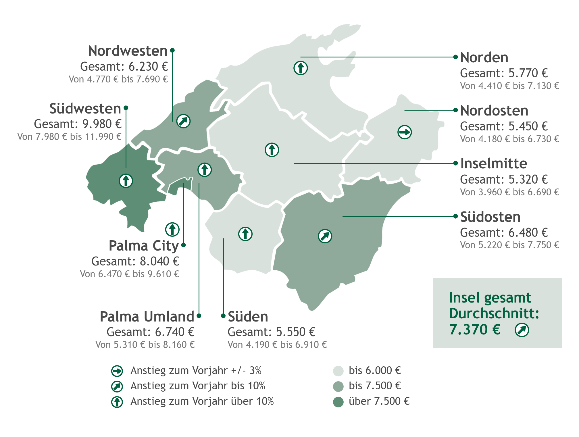 Die Immobilienpreise auf Mallorca sind im vergangenen Jahr im Durchschnitt um rund 8 - 10 % gestiegen. Im Luxussegment (ab ca. 2 Mio. Euro) liegt das Wachstum jedoch deutlich darüber: Hier wurden Preissteigerungen von bis zu 12 - 15 % registriert. Damit wächst der Premiumbereich rund 1,5-mal so stark wie der Gesamtmarkt, ein klares Signal für die zunehmende Nachfrage nach hochwertigen Immobilien auf Mallorca durch internationale Investoren.https://www.porta-mallorquina.de/immobilien/luxusimmobilien/
