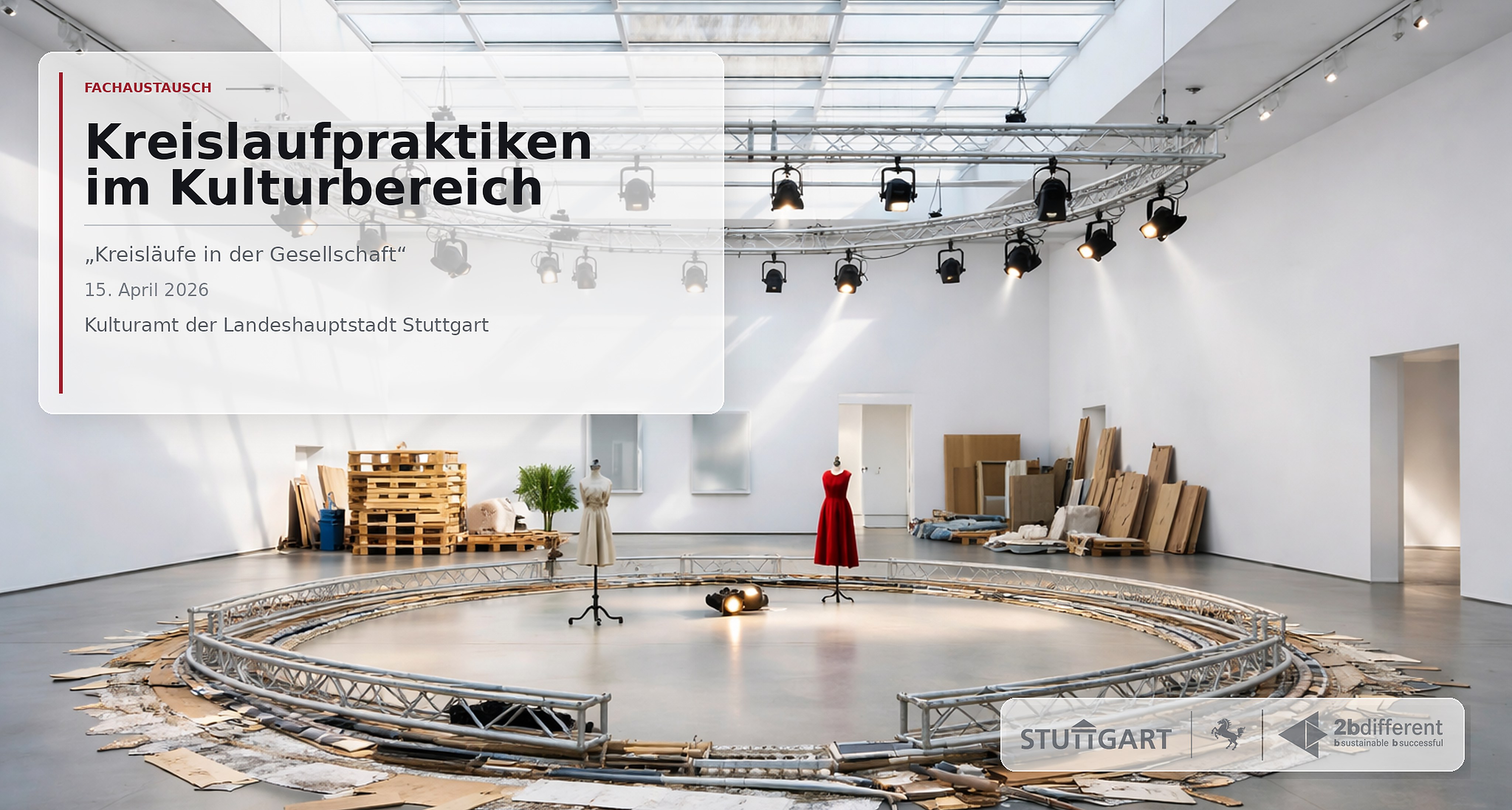 (IINews) - Stuttgart/Speyer, April 2026. Mit dem Fachaustausch zu Kreislaufpraktiken im Kulturbereich ist in Stuttgart ein Austauschprozess gestartet, der Kulturinstitutionen, Kollektive, freie Künstler:innen und weitere Akteur:innen der Stuttgarter Kulturlandschaft im Zeichen der Kreislaufwirtschaft zusammenbringt. Die Veranstaltungsreihe widmet sich dieser Zukunftsfrage mit dem Ziel, bestehende Kreislaufpraktiken sichtbar zu machen, weiterzuentwickeln und neue Ansätze gemeinsam zu erproben. Eingeladen zum Auftakt hatte Jan Stohr, Leiter des Bereichs Nachhaltige Kulturentwicklung im Kulturamt der Landeshauptstadt Stuttgart. Konzipiert und umgesetzt wird das Format von der 2bdifferent GmbH&Co. KG im Auftrag des Kulturamts Stuttgart im Rahmen der Nachhaltigen Kulturentwicklung.