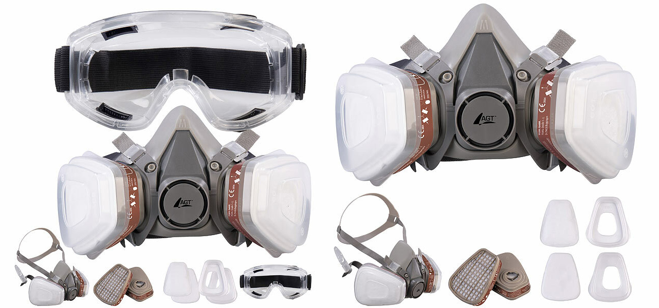 AGT Atemschutzmaske AS-105 mit Schutzbrille mit je 2 Gas- und Partikelfiltern