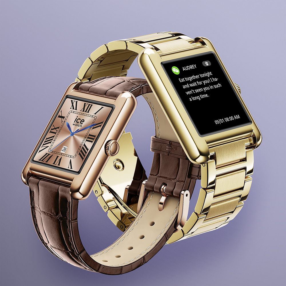Mit der ICE smart TKS 2.0 zeigt Ice- Watch, dass smarte Technologie nicht futuristisch wirken muss. Sie kann ebenso klassisch, fein und persönlich sein. Das Gehäuse aus Edelstahl ist in Silber, Gold- oder Roségoldoptik erhältlich und kann mit italienischen Lederarmbändern im Kroko- Look oder stahlfarbenen Gliederbändern mit Faltschließe kombiniert werden. Alle Armbänder sind dank EasyStrap-System austauschbar.