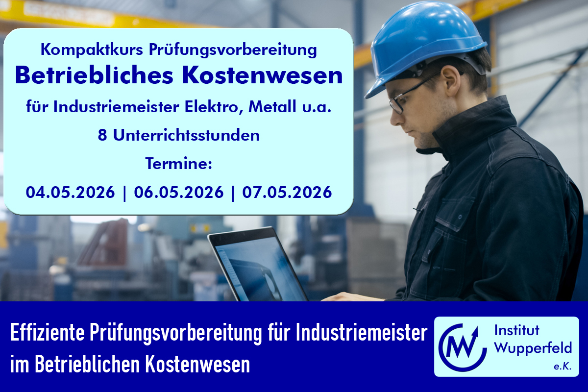 (IINews) - Die Prüfung im Fach „Betriebliches Kostenwesen“ zählt für angehende Industriemeister zu den anspruchsvollsten Bausteinen der Qualifikation. Komplexe Rechenverfahren, fundiertes betriebswirtschaftliches Verständnis sowie die sichere Anwendung von Methoden der Kostenrechnung stellen hohe Anforderungen. Eine gezielte und strukturierte Prüfungsvorbereitung entscheidet daher maßgeblich über den Erfolg.
