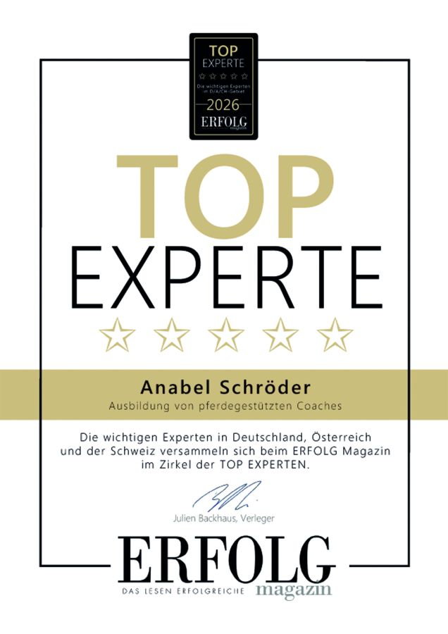"Ich bin stolz darauf, Teil dieser prestigeträchtigen Liste zu sein", so Anabel Schröder,"und sehe die Auszeichnung als Ansporn, auch künftig höchste Standards in der beruflichen Weiterbildung und speziell im Bereich des pferdegestützten Coachings zu setzen".