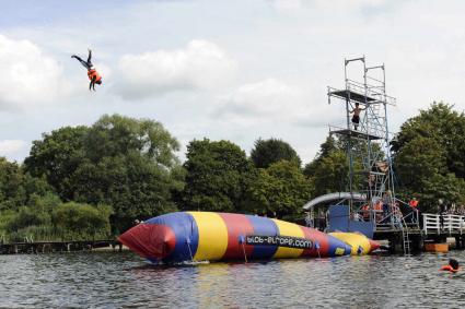 der Sprung mit dem Wasserkatapult ins kühle Nass bei "Crazy