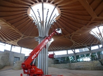 Professionell durchgeführte Reinigungsarbeiten sind ohne Mobile Höhenzugangstechnik sprich Arbeitsbühnen nicht mehr denkbar. Der Boden im Elefantengehege verläuft ansteigend und abfallend, dem Gelände in natürlicher Umgebung nachempfunden. Diese Gegebenheit war Achim Seuren, Geschäftsführer der GL Verleih NRW GmbH in Köln und Vorsitzender des Bundesverbandes der Baumaschinen-, Baugeräte- und Industriemaschinenfirmen e.V., kurz bbi, aus dem Vorjahr bestens in Erinnerung. Bei der Auswahl der passenden Hubarbeitsbühne hatte er sich für eine Spezialarbeitsbühne aus der Leo-Serie entschieden. Der Leo T 30 macht es dem Benutzer hier leicht. Er lässt sich auch auf schwierigem Gelände sicher aufstellen bis zu einer Geländeneigung von 30 %, sowohl auf festem wie auf matschigem Untergrund. Er ermöglicht ein rasches, unkompliziertes Handling und die Abstützautomatik ermöglicht das sprichwörtlich sichere Arbeiten in der Höhe. Seine maximale Arbeitshöhe von 30 m wurde hier nicht ausgereizt, das Dach des Elefantenhauses ist „nur“ ca.15 m hoch.