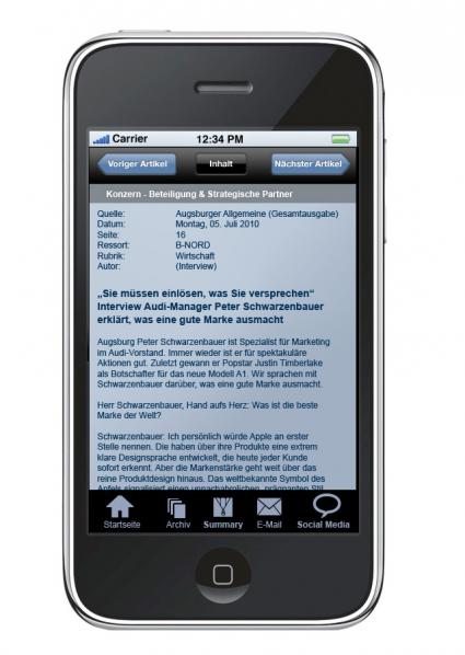 August 2010 eine Anwendung zum mobilen Abruf von Pressespiegeln mit