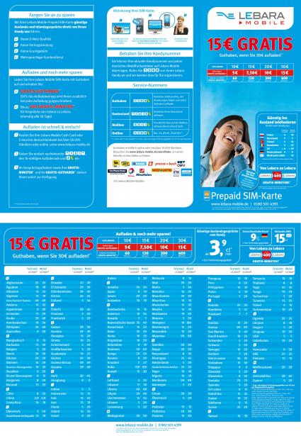 ganz Deutschland oder online über www.lebara-mobile.de aufgeladen