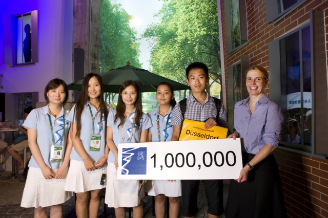 (IINews) - Am Sonntag, dem 1. August, empfingen die Mitarbeiter des Düsseldorfer Pavillons auf der Expo Shanghai den einmillionsten Besucher. Zur Halbzeit nach drei Monaten liegt die durchschnittliche Besucherzahl pro Tag im Düsseldorfer Pavillon damit bereits über den erwarteten 11 000. Insgesamt haben bis heute etwa 35 Millionen Menschen die Expo besucht. Yunjin Shi aus Kaifeng, in der Provinz Henan, freute sich über die Tasche der Stadt Düsseldorf, das Metro Starfarm Maskottchen LongLong und die fünf Easy Access Karten für den deutschen Pavillon, die ihm die Mitarbeiter des Düsseldorf Pavillons überreichten. "Düsseldorf muss eine faszinierende Stadt sein", sagte Yunjin Shi, "schon hier im Pavillon herrscht eine tolle Atmosphäre."